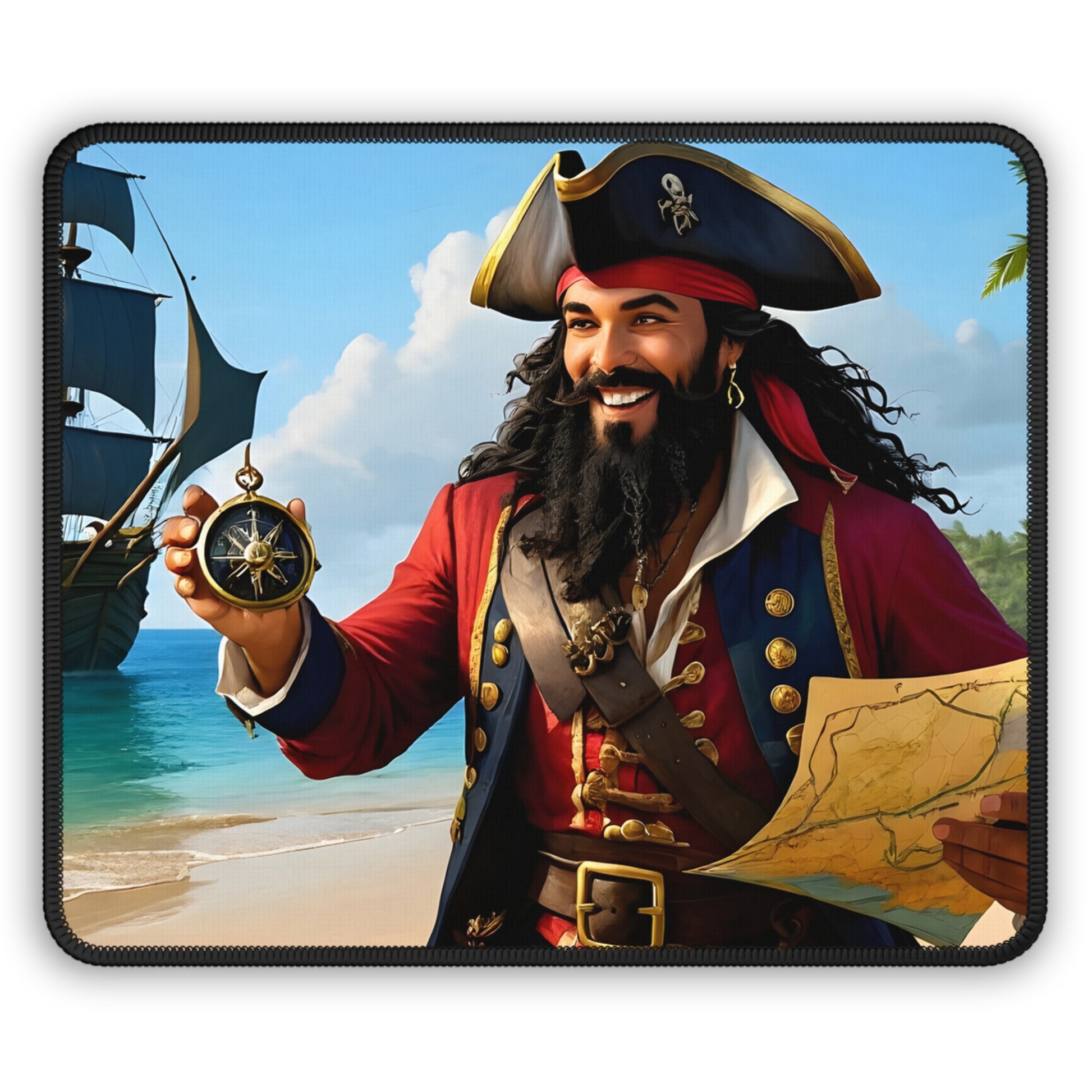 Blackbeard Adventure Gamer Mousepad, Gamer Gift, Nautical Mousemat, Gaming Accessories, Fantasy Art