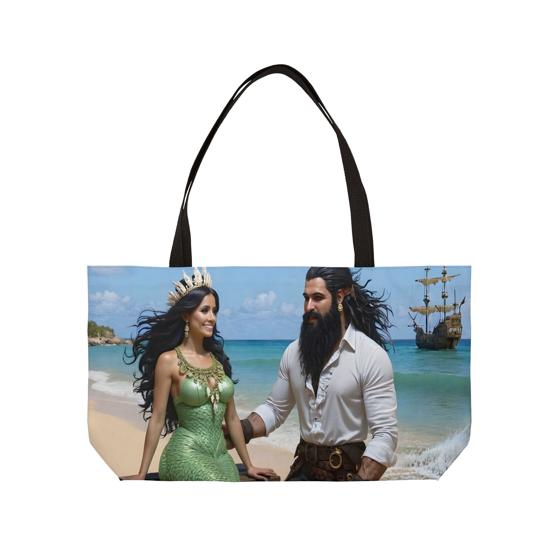 Blackbeard meeting the mermaid Myrtle Fantasy Pirate Weekender Tote Bag, Beach Bag, Travel Tote, Bohemian Style Bag, Gift for Pirate Lovers, Vacation Essentials