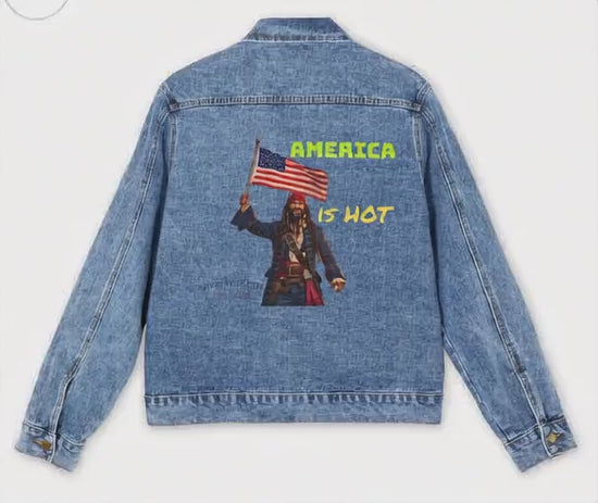 Blackbeard - America is HOT Men's Denim Jacket, American Pride Outerwear, Casual Cool Style, Independence Day Fashion, Gift for Him