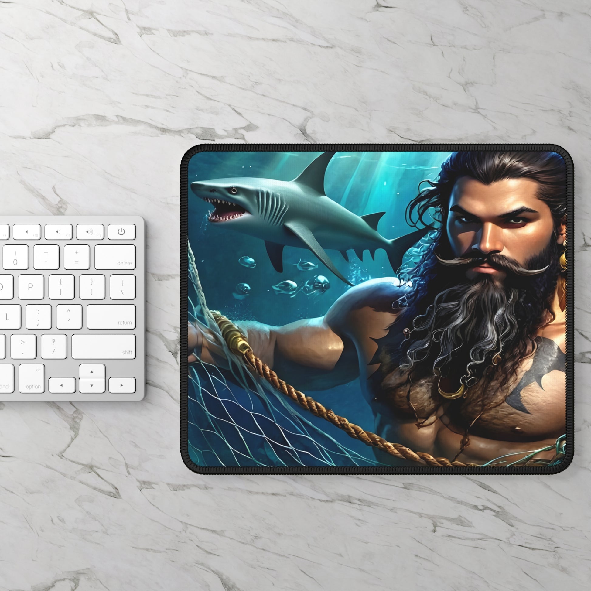 Blackbeard - Shark Tank Fantasy Gamer Mousepad, Gamer Gift, Nautical Mousemat, Gaming Accessories, Fantasy Art