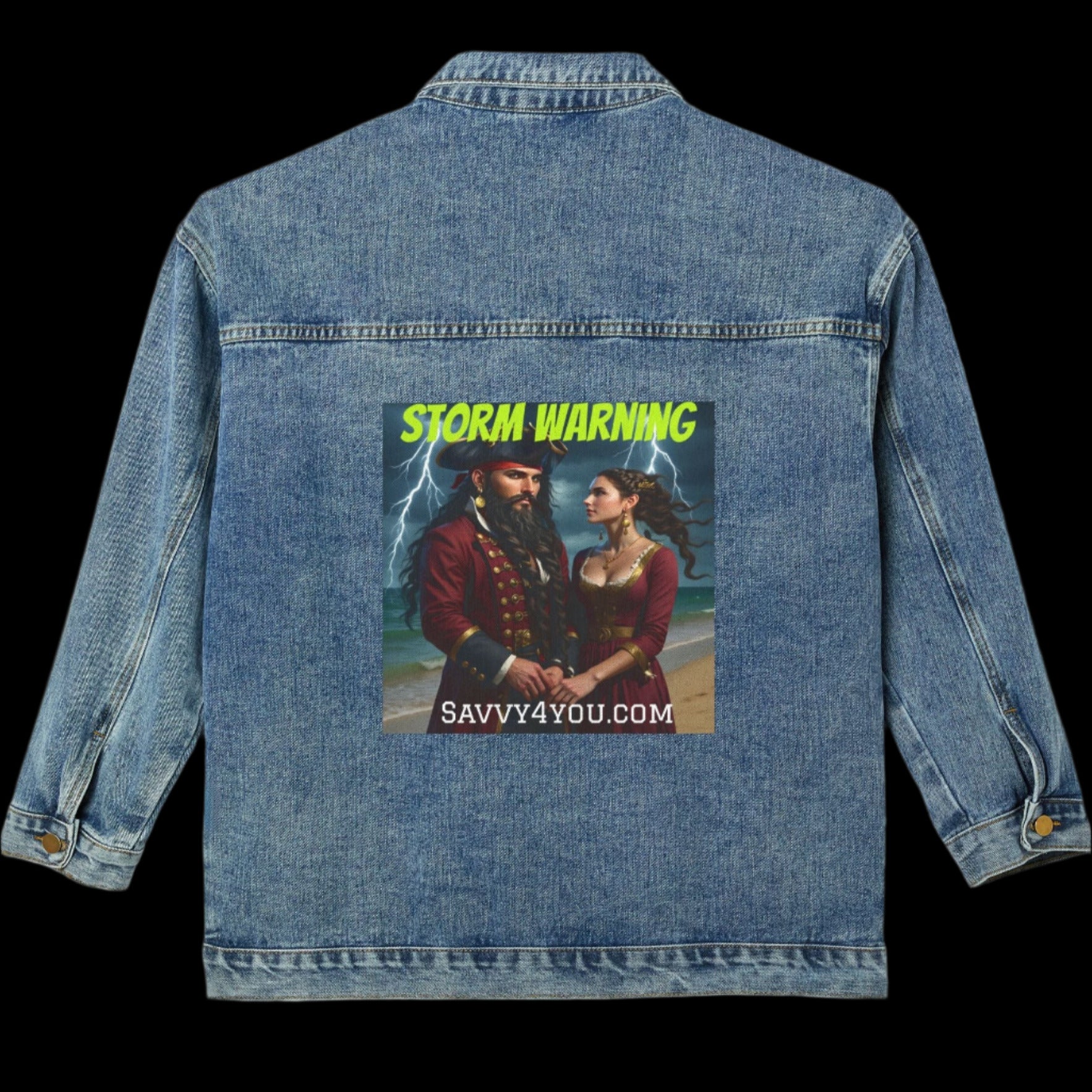 Blackbeard - Storm Warning jacket. Elevate your wardrobe with this stylish Women's Denim Jacket, designed for the modern woman who values both comfort and flair. Its relaxed, oversized fit exudes a laid-back vibe, perfect for any casual outing or social gathering. Whether you're heading to a brunch with friends or enjoying a cozy evening by the bonfire, this jacket is a versatile addition to your collection. Ideal for fashion-forward individuals who appreciate classic styles with a twist, it seamlessly blends with jeans or dresses alike. Perfect for gifting during occasions like birthdays, holidays, or special celebrations, this denim jacket will quickly become a favorite staple in your closet, ensuring you stay chic and comfortable all year long.